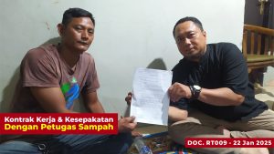 Informasi lengkap mengenai kesepakatan kontrak kerja antara Pengurus RT 009 dan petugas sampah dapat Anda baca di sini: Kesepakatan Kontrak Kerja Petugas Sampah dan Pengurus RT 009.
